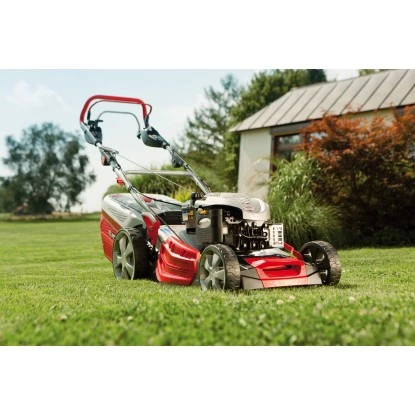 Der Al-Ko Benzin-Rasenmäher Highline 523 VS mit 4in1-Funktion: Mähen, Fangen, Mulchen und Seitenauswurf. Der leistungsstarke B&S Series 675 EX Ready Start Motor macht es möglich. Die 70 l Fangbox verfügt über eine Füllstandsanzeige, mit der man stets den Überblick hat. Ein exklusiver, ergonomisch geformter und höhenverstellbarer Führungsholm mit Softgriff sorgt für zusätzlichen Komfort. Das Max Airflow Gehäuse bringt beste Mäh- und Fangergebnisse. Mit stufenlosem Hinterradantrieb Speedcontrol und kugelgelagerten Rädern für leichtes Schieben. Ein praktischer Kunststoff-Tragegriff erleichtert den Transport.