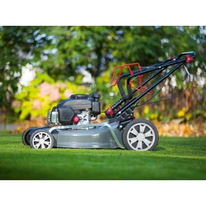 Die Vorwärtsbewegung erfolgt mithilfe des Randantriebes durch Motorkraft, sodass bei längeren Bahnen viel Kraft gespart wird. Die kugelgelagerten Hinterräder ermöglichen ein leichtgängiges Fahren. Sie erzielen somit ein sauberes Schnittbild und gleichen Bodenunebenheiten aus. Die zentrale Schnitthöhenverstellung ist in sieben verschiedenen Positionen von 25 mm – 75 mm einstellbar.