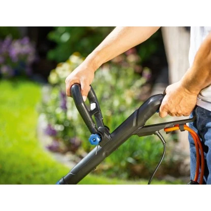 Um Ihre nahegelegenen Beetpflanzen oder Blumen vor Beschädigungen zu schützen, ist der Rasentrimmer mit einem Pflanzenschutzbügel versehen. Da das Gerät von 96 cm – 130 cm teleskopierbar ist, bietet es Ihnen eine entspannte Körperhaltung unabhängig von Ihrer Größe. Für ein komfortables Kantenschneiden verfügt es über ein praktisches Zusatzrad. Durch den verstellbaren Zusatzhandgriff ermöglicht der Elektro-Rasentrimmer eine bequeme Geräteführung. Sein drehbarer und abwinkelbarer Schneidkopf lässt sich in der Neigung anpassen, wodurch Sie auch unter Hindernisse und schwer erreichbare Flächen gelangen.
