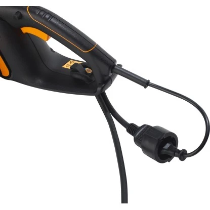 Ein Sichtfenster erleichtert die Wartung durch schnelle Ölstandskontrolle. Im Lieferumfang ist eine Kabelklemme enthalten, welche die Spannung am Kabel entlastet und dieses fixiert sowie eine zweite Kette.