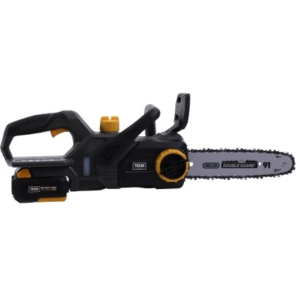 Die flexible Texas Akku-Kettensäge CSW 2000 hat eine Schwertlänge von 25 cm und wiegt nur 2,7 kg. Dank des Betriebs der Säge durch Akku arbeiten Sie unabhängig von Steckdosen und vermeiden lange Kabelwege.